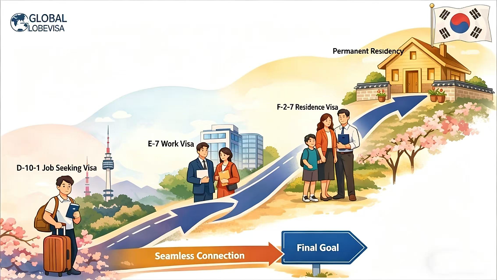 ● Clear long-term pathSmooth transition route:D-10-1 → E-7 → F-2-7 → F-5 permanent residenceEligible for family relocation and full local benefits.